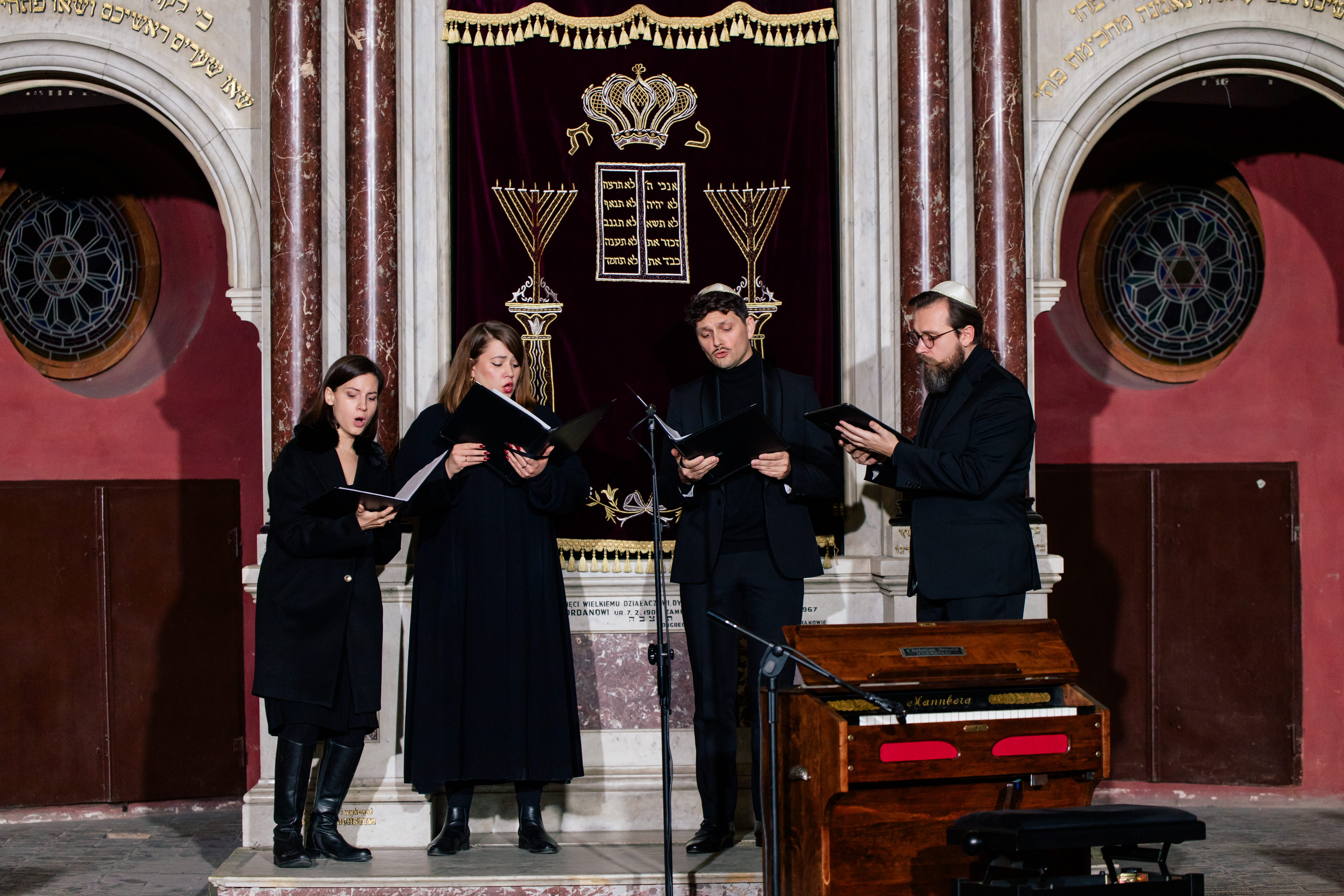 Koncert będzie jedną, wielowarstwową opowieścią – nie tylko o muzyce, ale i o pamięci, wyobraźni, wielopokoleniowym przekazie. W wydarzeniu wystąpią artyści związani z krakowskim środowiskiem muzycznym: sopranistka Aleksandra Szerocka-Bokwa, alt Matylda Sielska, tenor Stanisław Zyskowski, bas Adam Radnicki oraz organista Synagogi Pestalozzistrasse w Berlinie Jakub Stefek, który jako adiunkt Akademii Muzycznej w Szczecinie bada - zarówno od strony wykonawczej, jak i historycznej – twórczość kompozytorów synagog reformowanych. Punktem wyjścia stał się dla twórców Kraków – miasto wielu języków, kultur i świątyń, gdzie przez niemal pół wieku działał kantor kompozytor Eliezer Goldberg (1843-1920) wysoko ceniony przez przedwojennych krakowian. Znane w Krakowie musiały być też dzieła Abrahama Bera Birnbauma (1865-1922), którego kompozycje i pisma teoretyczne wykonywano i czytano na całym świecie. Podczas koncertu zabrzmią też dzieła cieszącego się międzynarodowym uznaniem lwowskiego kantora Barucha Schorra (1923-1904), a także Barucha Kinstlera (1846-1934).